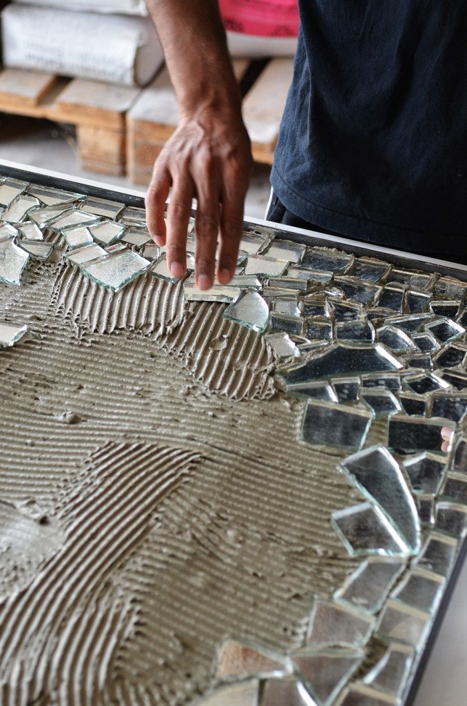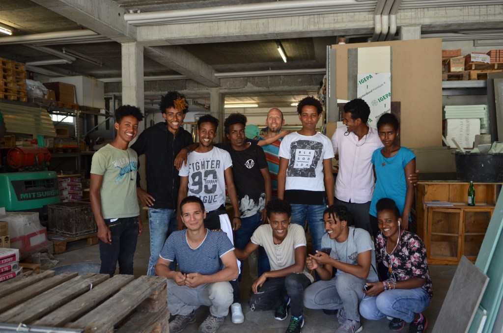 Armin lud mich im Frühling 2017 dazu eine bei einem Workshop mit jungen Geflüchteten teilzunehmen und diesen mit meiner Kamera zu dokumentieren. Die Teilnehmer fertigten in seiner Werkstatt in Stockach Spiegelmosaike an. Bei der Arbeit mit den Jugendlichen entstand die Idee, die Spiegelmosaike zusammen mit Portraitbildern im Rahmen der Arte Romeias auszustellen.
